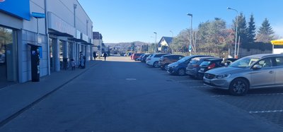 Car park located next to shopping center.