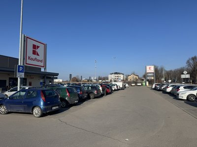Carpark located next to Kaufland market in Garwolin.