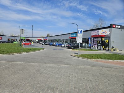 Carpark located next to shopping center in Łochów.