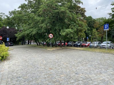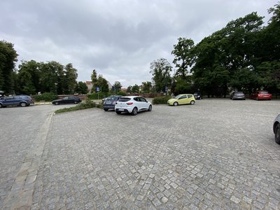Car park located next to cemetery in Ostrów Wielkopolski.