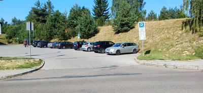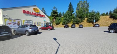 Carpark located next to shopping center Delikatesy Piotruś Pan in Przemyśł.