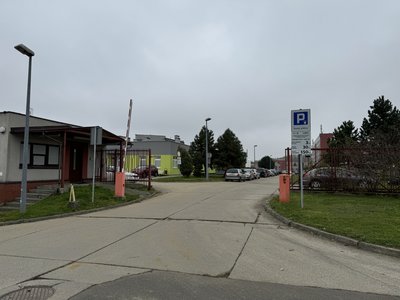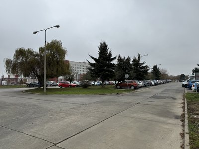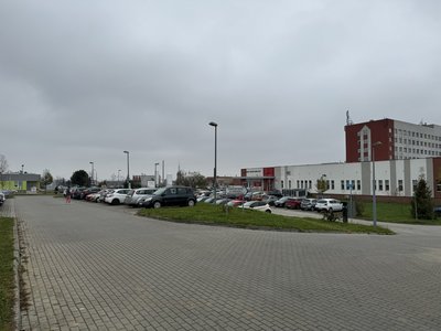 Carpark located next to hospital in Racibórz.