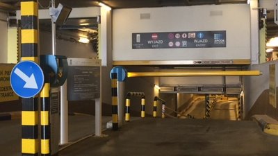 Five-star Marriott Hotel car park, consisting of an above-ground and an underground part, equipped with the Skidata parking system, located in the centre of Warsaw.