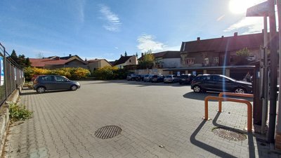 Parking zlokalizowany przy Resto-Bar w centrum rynku Makowa Podhalańskiego.