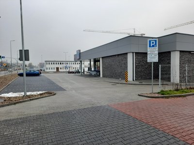 W pobliżu parkingu znajdują się stacja benzynowa, nowobudowane osiedle, sklep komputerowy.