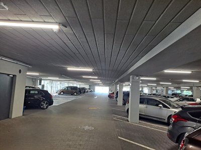 Parking zewnętrzny mniejszy. Część większa zadaszona na poziomie 0.
