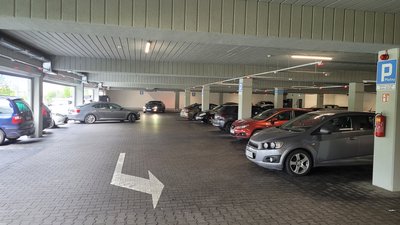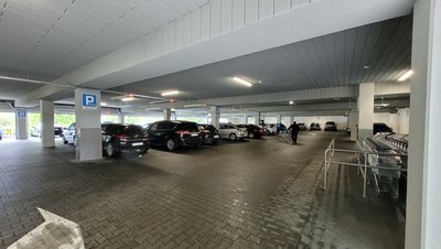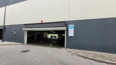 Parking przy markecie Lidl ul. Fort Służew 2 w Warszawie, na poziomie ulicy, zadaszony, wewnątrz budynku, składający się z 50 miejsc parkingowych przeznaczonych dla klientów sklepu, bez wjazdu dla dostawców.