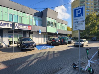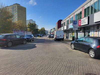 Parking zlokalizowany przy przychodni NFZ, wielkopowierzchniowym klubie fitness, dyskoncie Carrefour, sieci barów i sklepików.