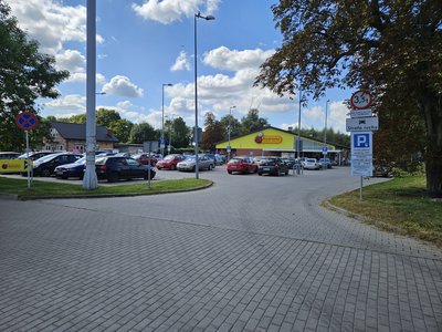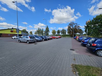 Parking dla klientów marketu Biedronka, z dwoma wjazdami od ul. Mickiewicza.