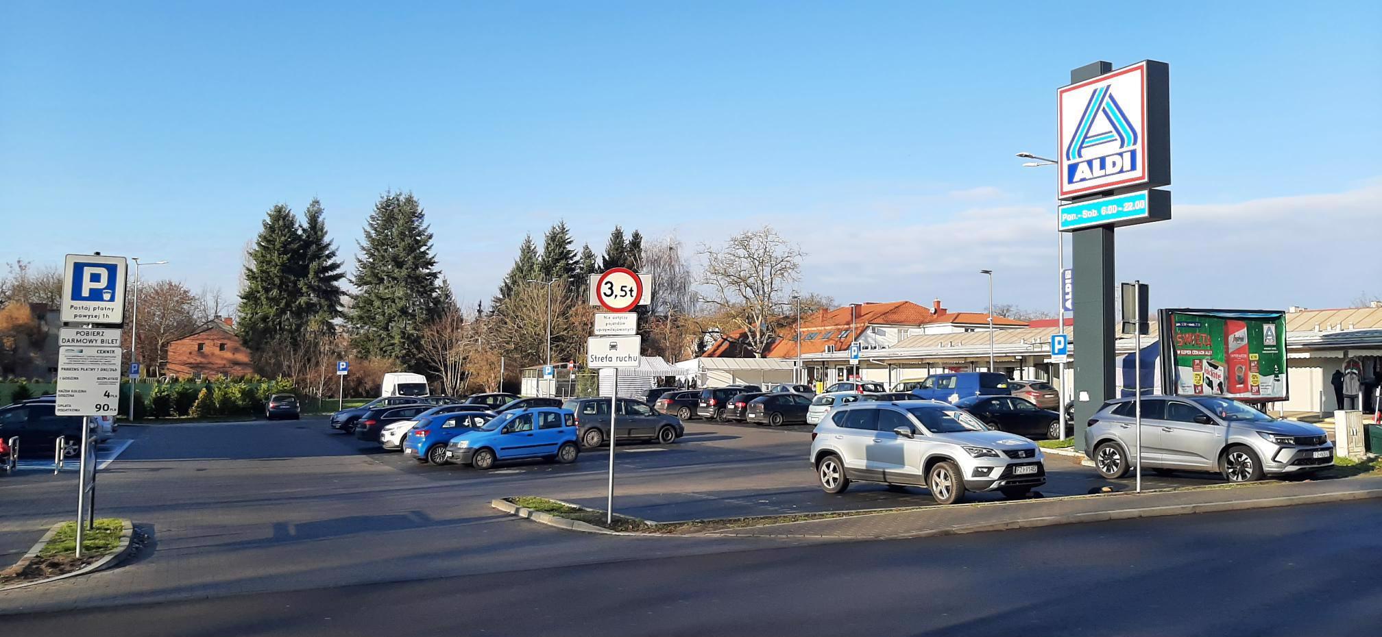 Parking zlokalizowany przy Aldi przy ul. Parkowej 6 w Krośnie Odrzańskim.