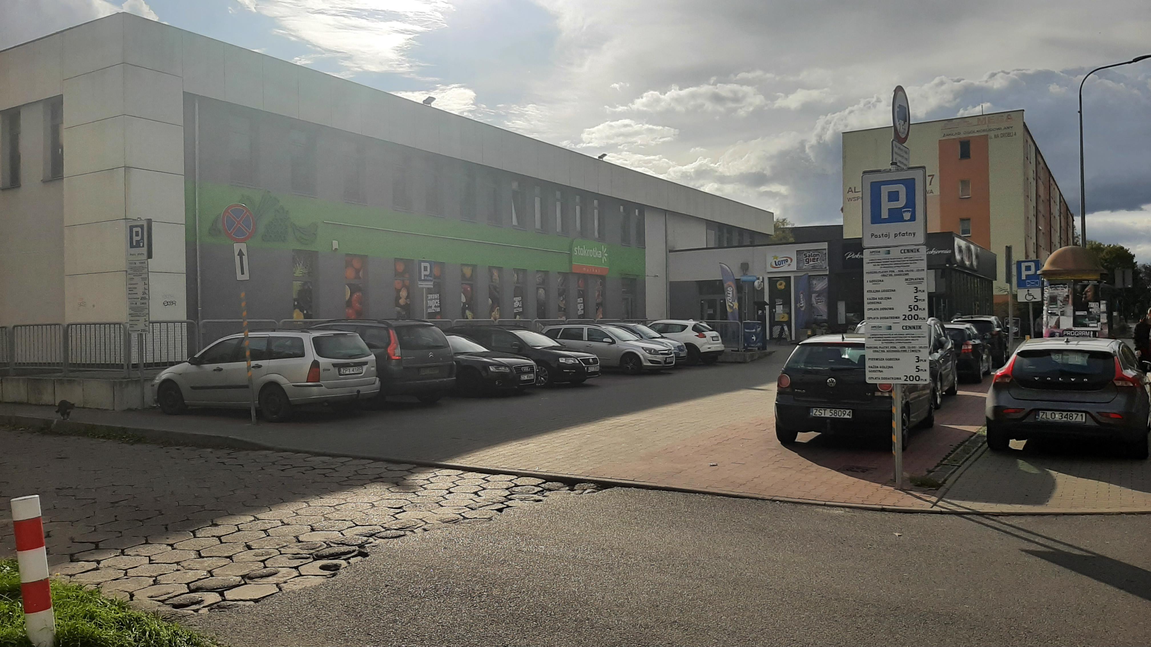 Parking zlokalizowany przy markecie Stokrotka, na al. Żołnierza 25 w Stargardzie. Do dyspozycji klientów jest 12 miejsc parkingowych.