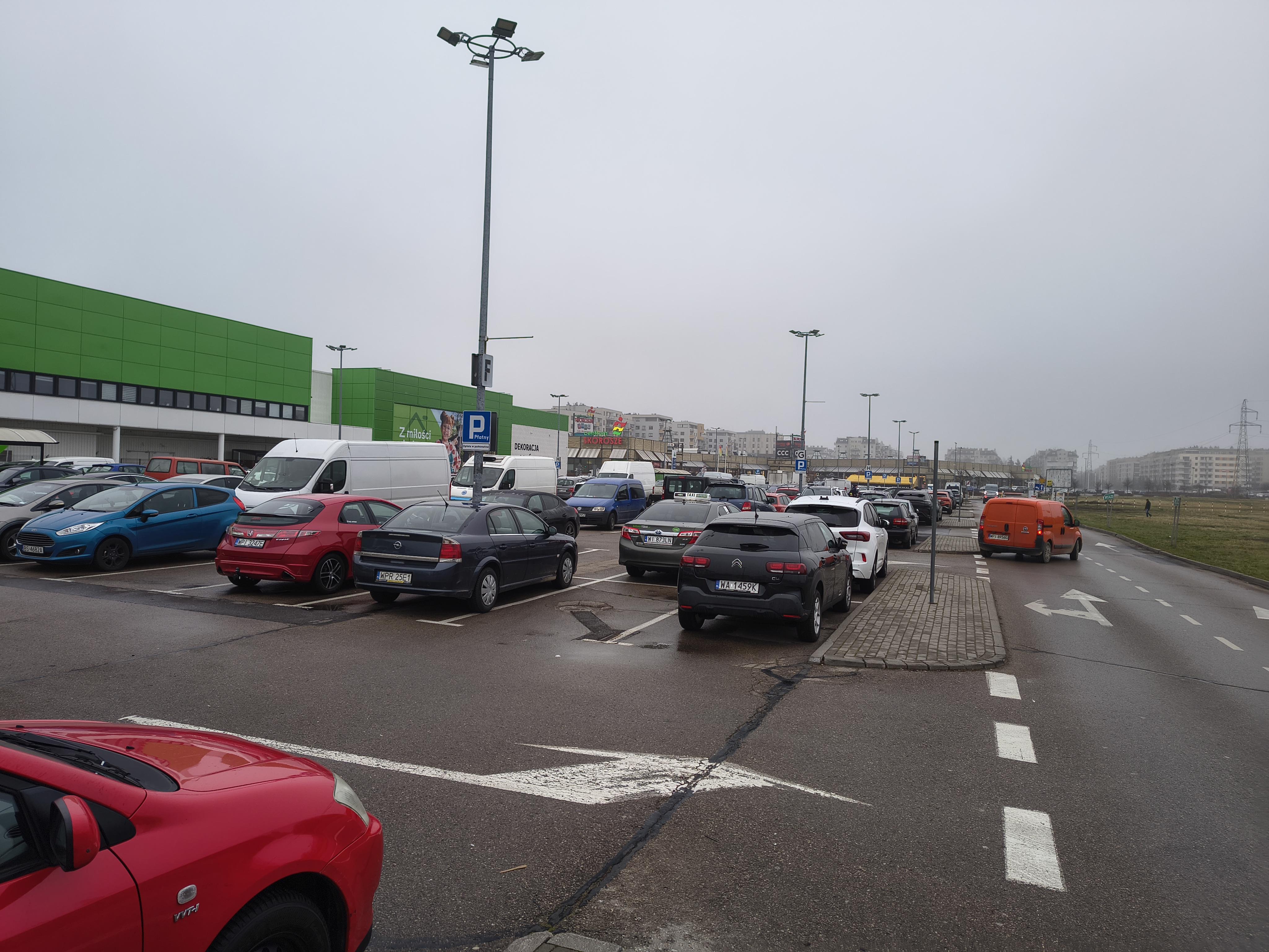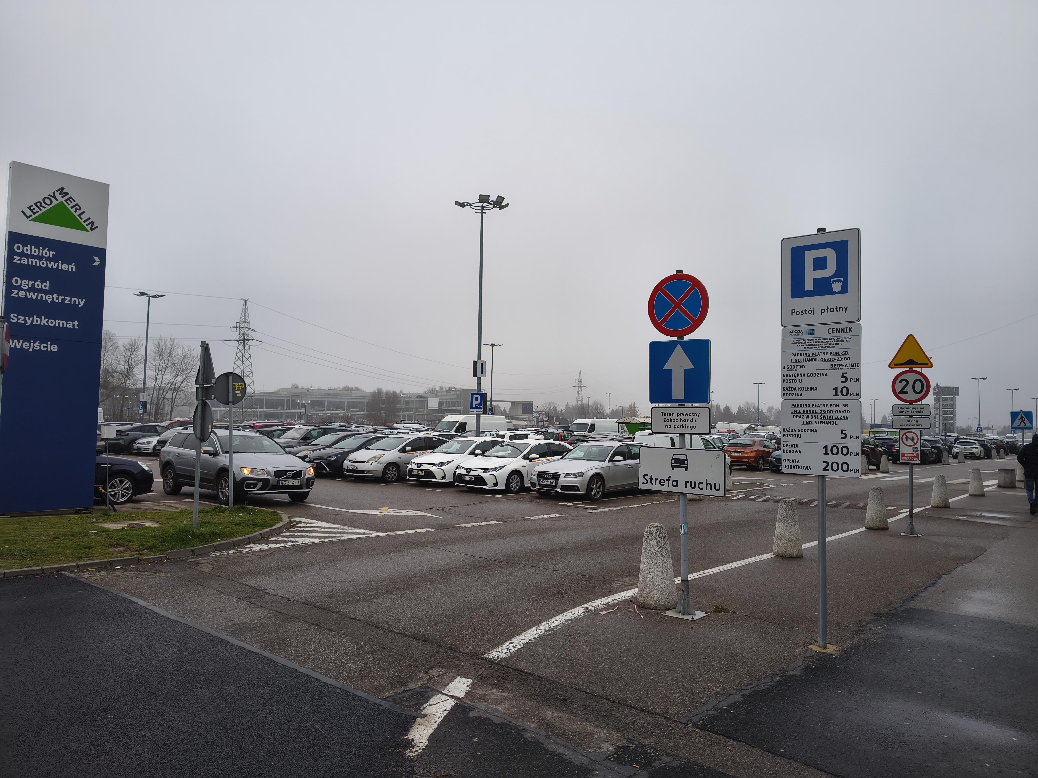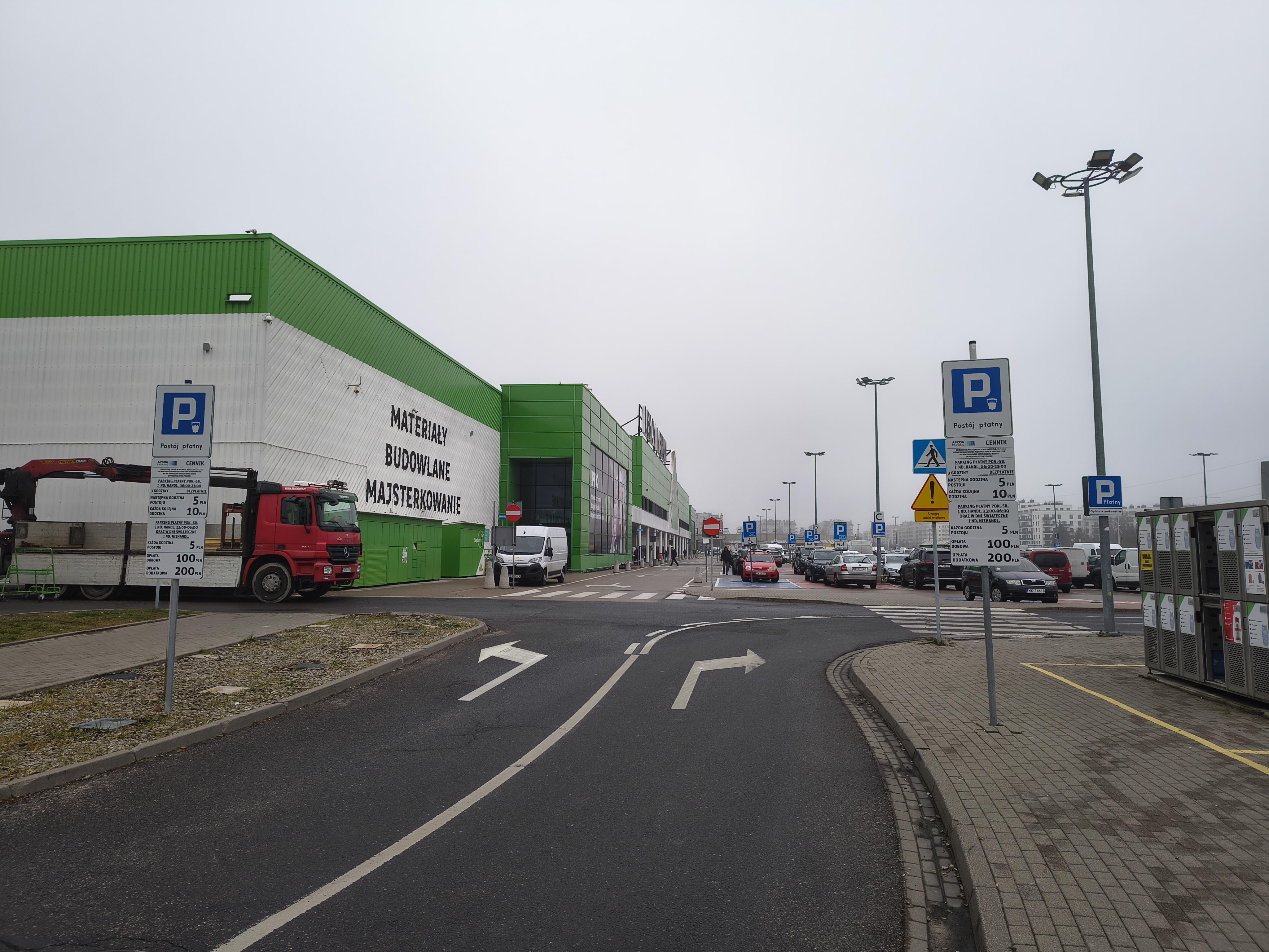 Parking zlokalizowany przy markecie Leroy Merlin, na al. Jerozolimskich 244, w Warszawie. Do dyspozycji klientów jest 400 miejsc parkingowych.