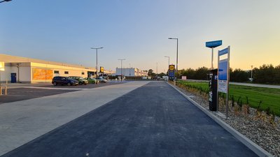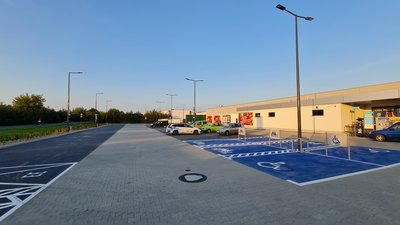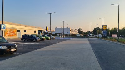 Parking przy sklepie Lidl w Dąbrówce, ul. Różany Zakątek 23.