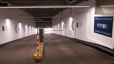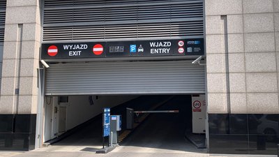 Wjazd na parking od strony ulicy Mariańskiej.